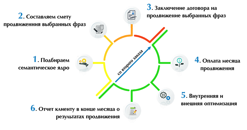 Сами работы над ресурсом можно разделить на две части: подготовительные и работы по улучшению видимости сайта в поисковой выдаче. Первостепенно оптимизатор приступает к исправлению ошибок, оптимизации страниц, корректировке текстов и приведению сайта в соответствие с необходимыми для SEO параметрами. Для улучшения видимости (позиций) в выдаче выполняются работы по наполнению разделов новой уникальной информацией, развитие ссылочного профиля и улучшению поведенческих факторов.