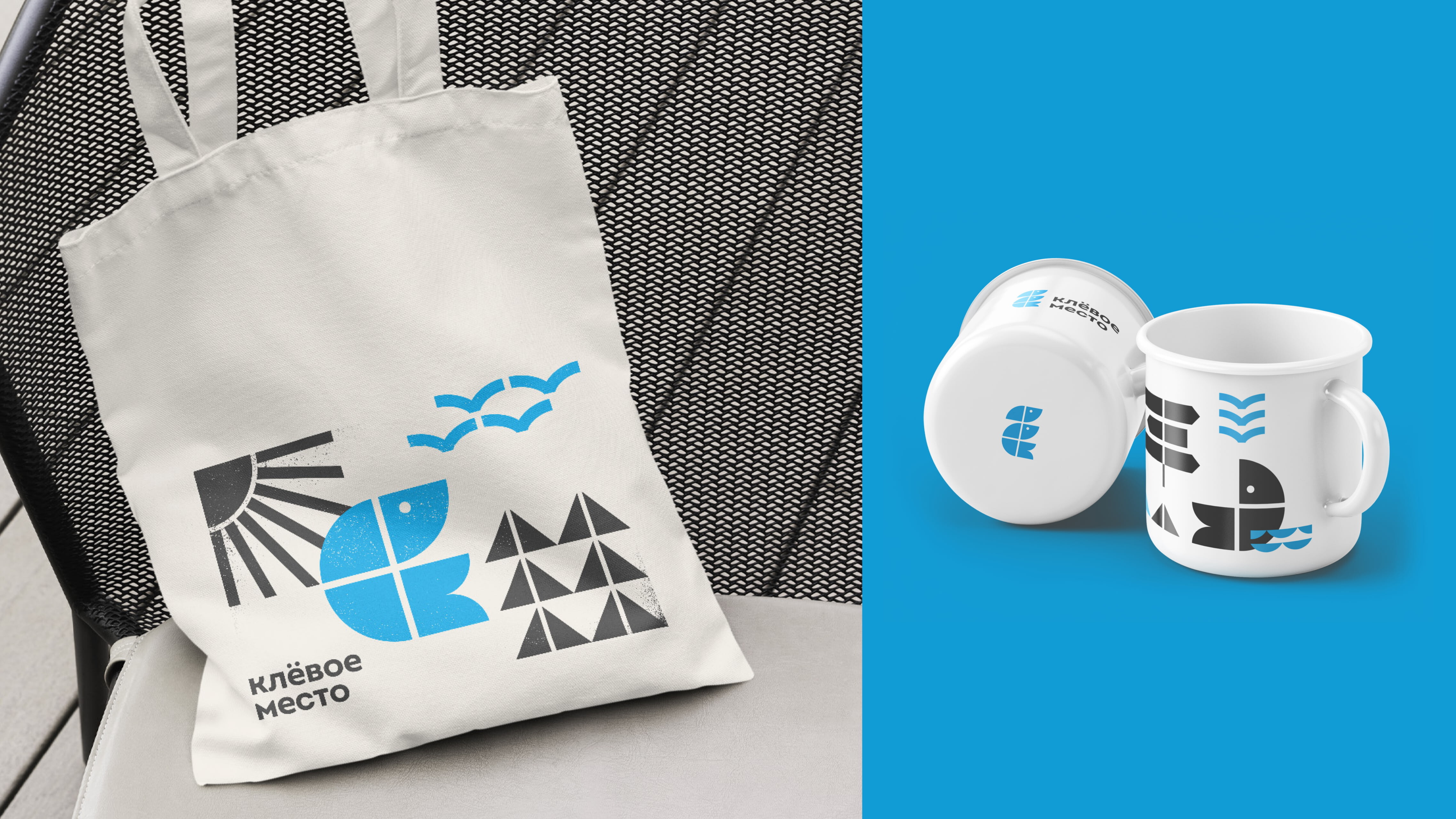 Для более практичных гостей задизайнили шоперы и кружки. Мерч «Клевого места» будет смотреться стильно и на природе, и в городе.