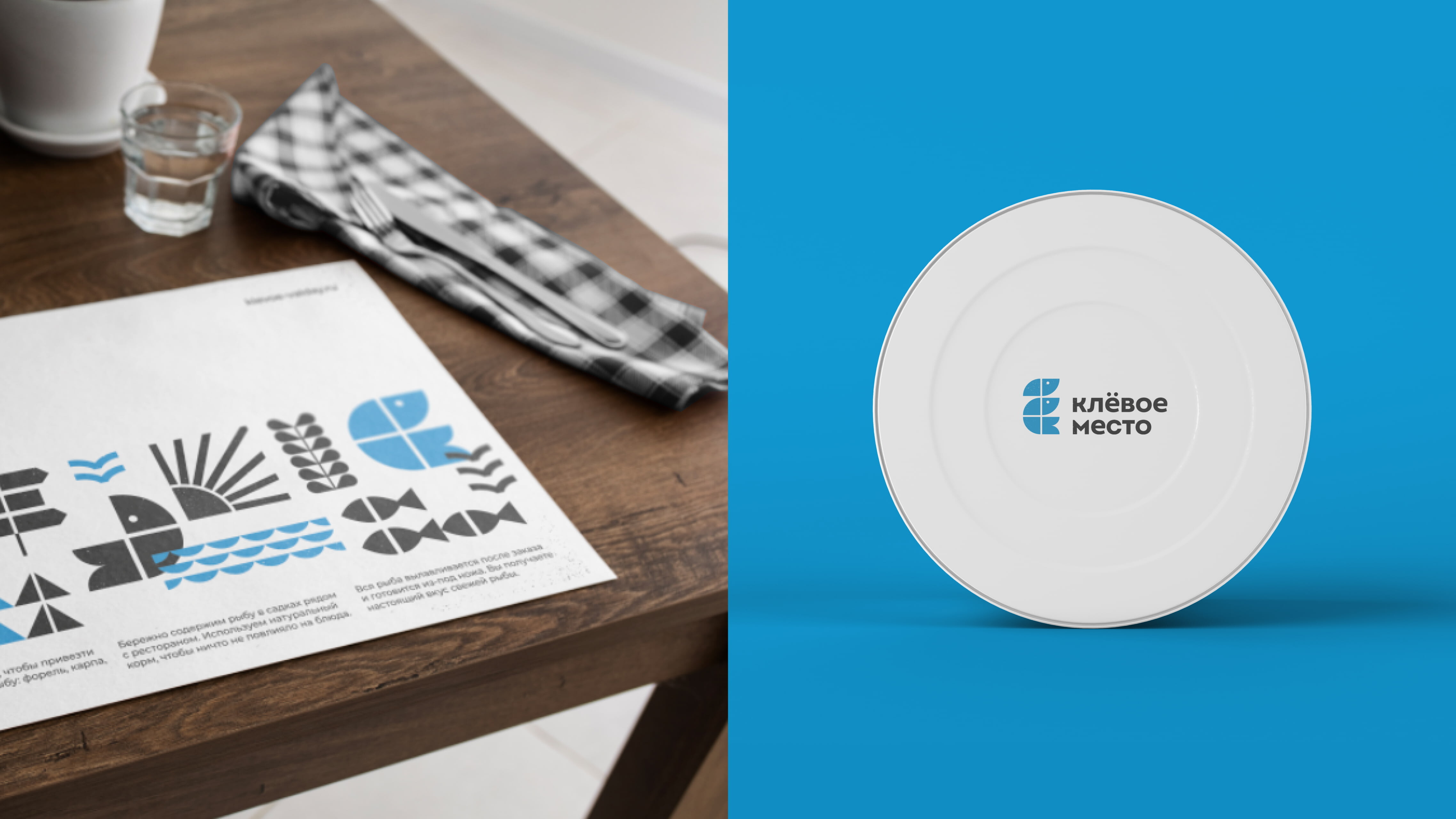 Представили, как новый фирменный стиль будет смотреться в рыбном ресторане. Оформили меню, используя только шрифты и логотип, чтобы не создавать визуальный шум. А для фартуков выбрали комбинацию паттернов.