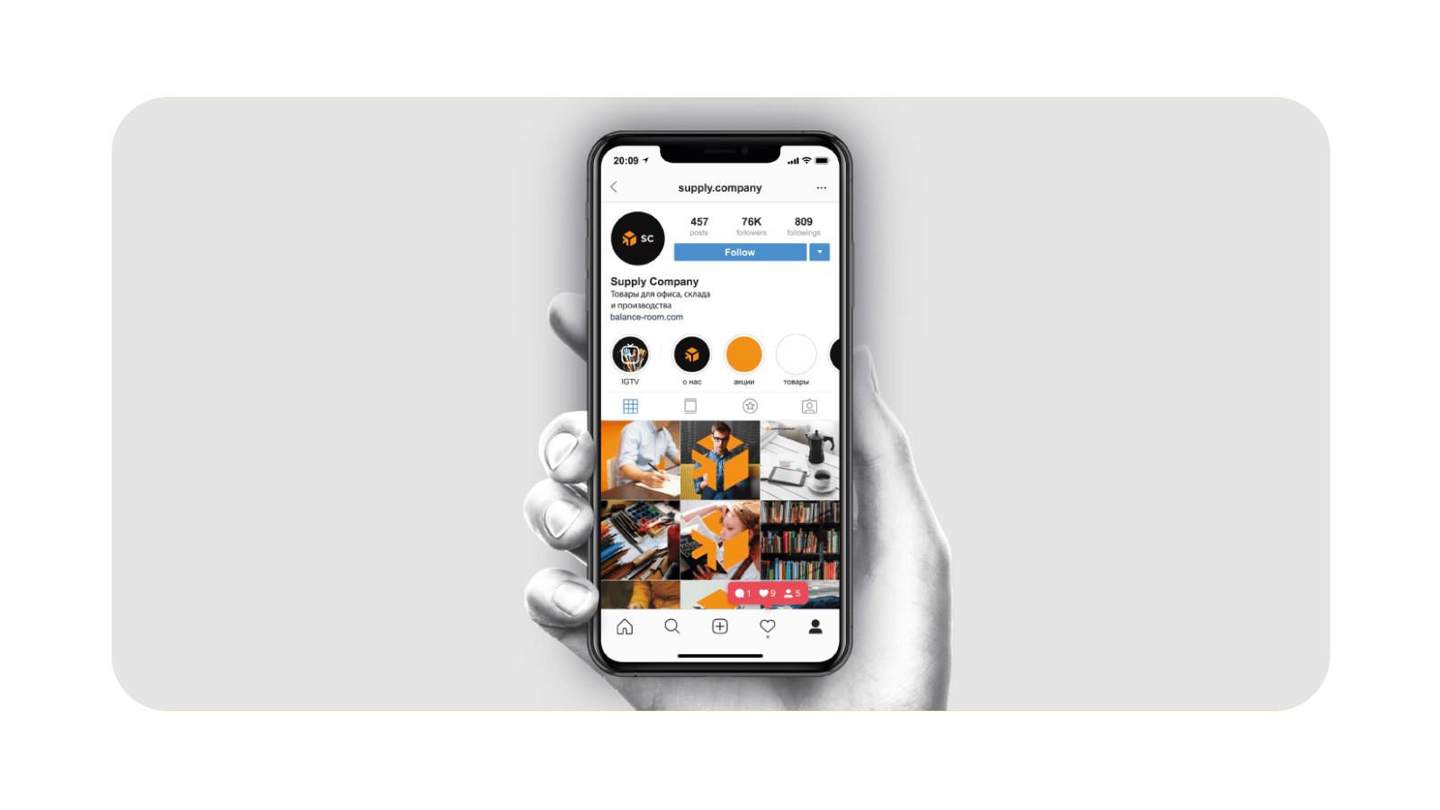 Места под логотип довольно мало — в качестве главного фото в аккаунте не получится поставить основной вариант логотипа, поскольку название компании сложно будет читать. Эффективнее всего с узнаваемостью в соцсетях справится знак.