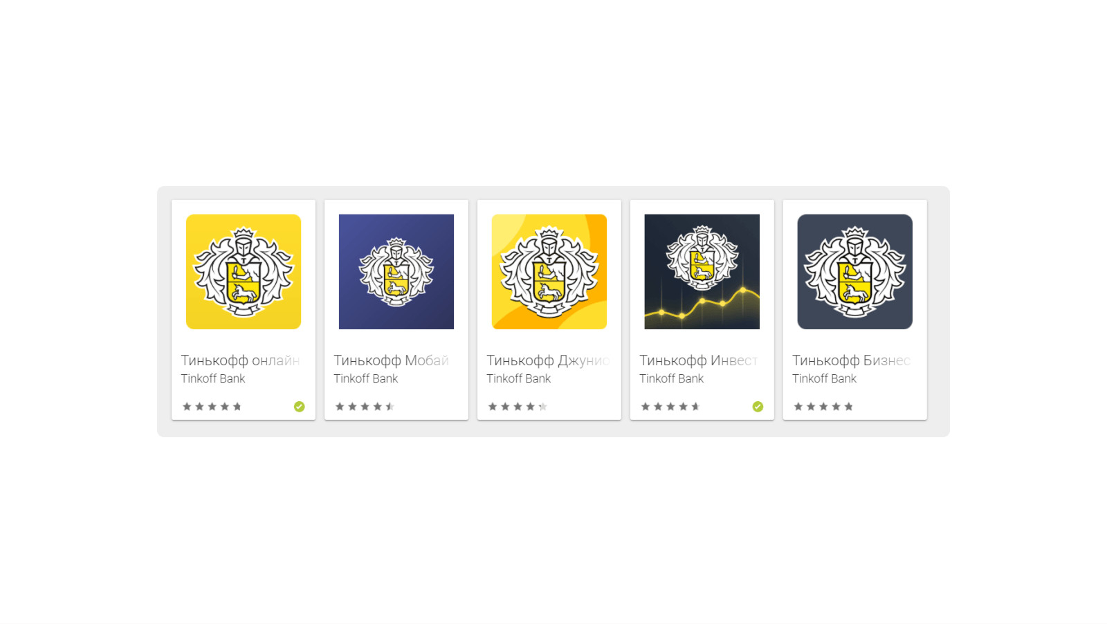 На чёрно-белой версии цветовые вариации не заканчиваются: цвет логотипа или его фона может меняться. Например, у Тинькофф Банка есть несколько цветовых вариантов фоновых плашек.