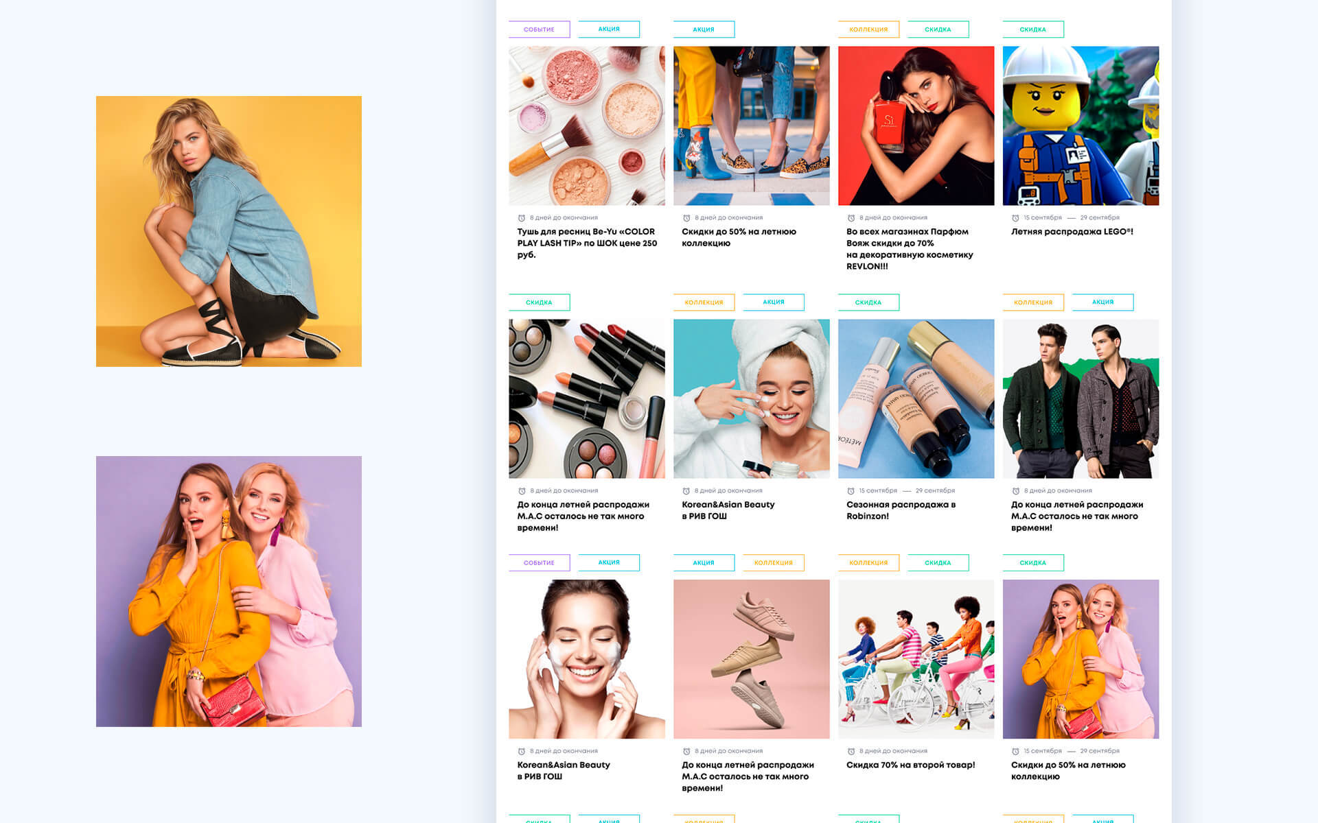 Основной пласт работ на новом сайте был сделал для формирования лояльности аудитории. Задача создать условия для группы людей у которой всегда будет заинтересованность в посещении сайта ТРЦ.