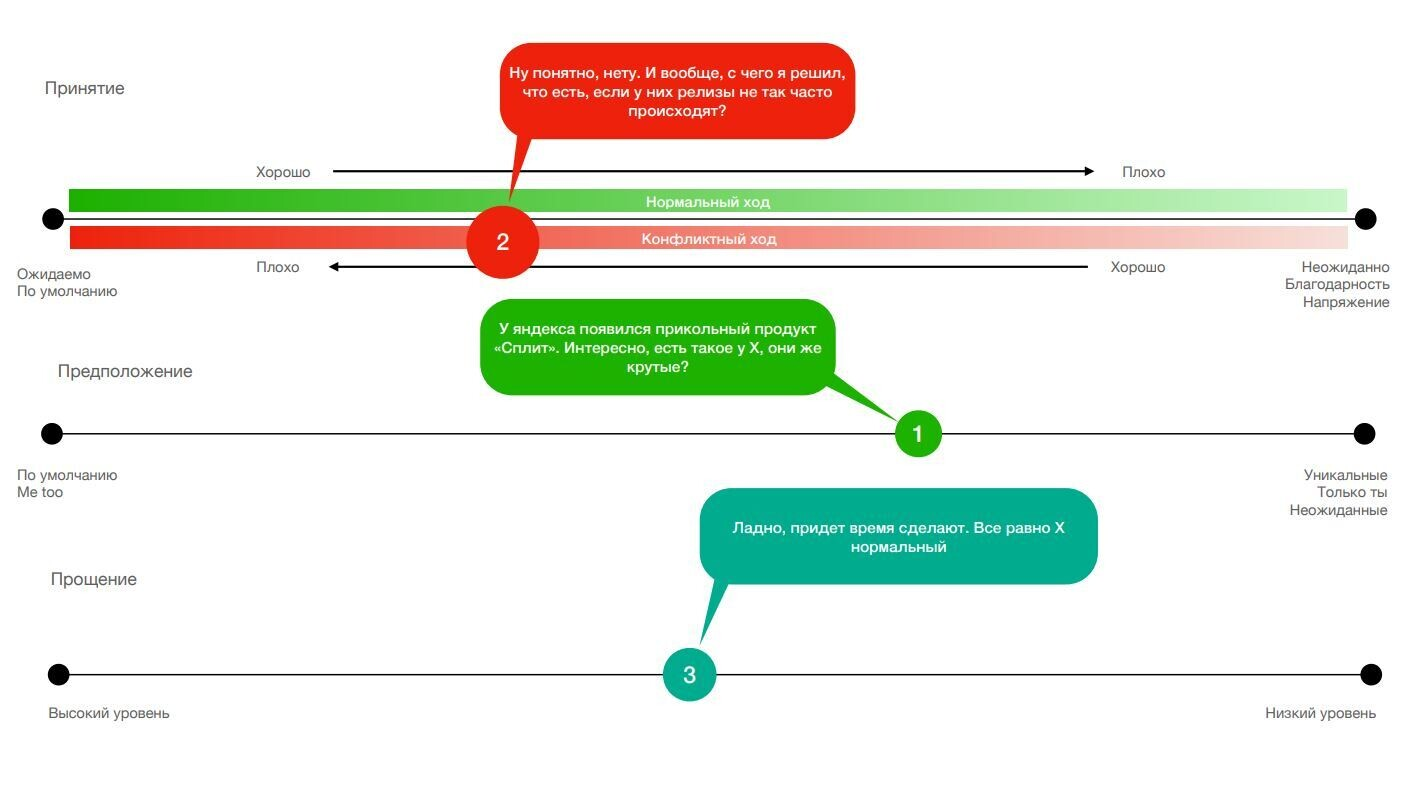 Мы выделяем для себя три эмоциональных вектора, в которых expectation-management помогает управлять ожиданиями пользователей: